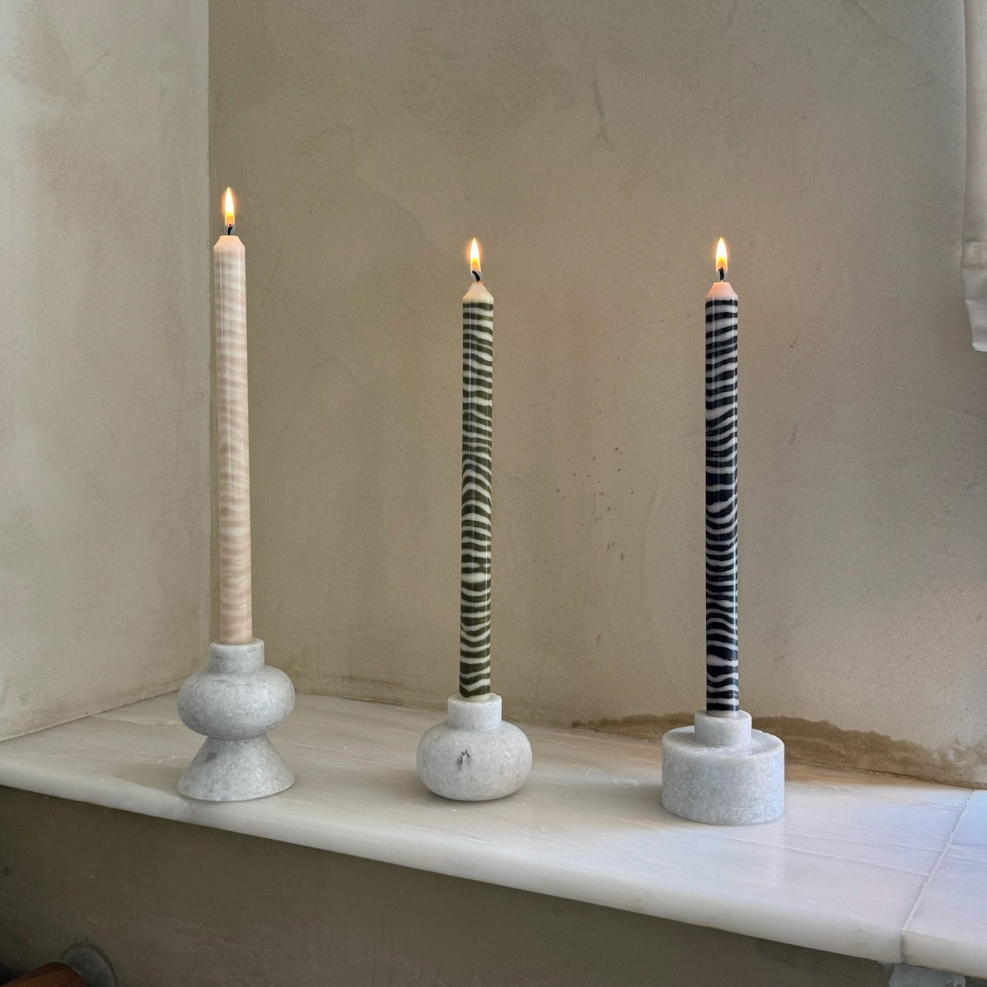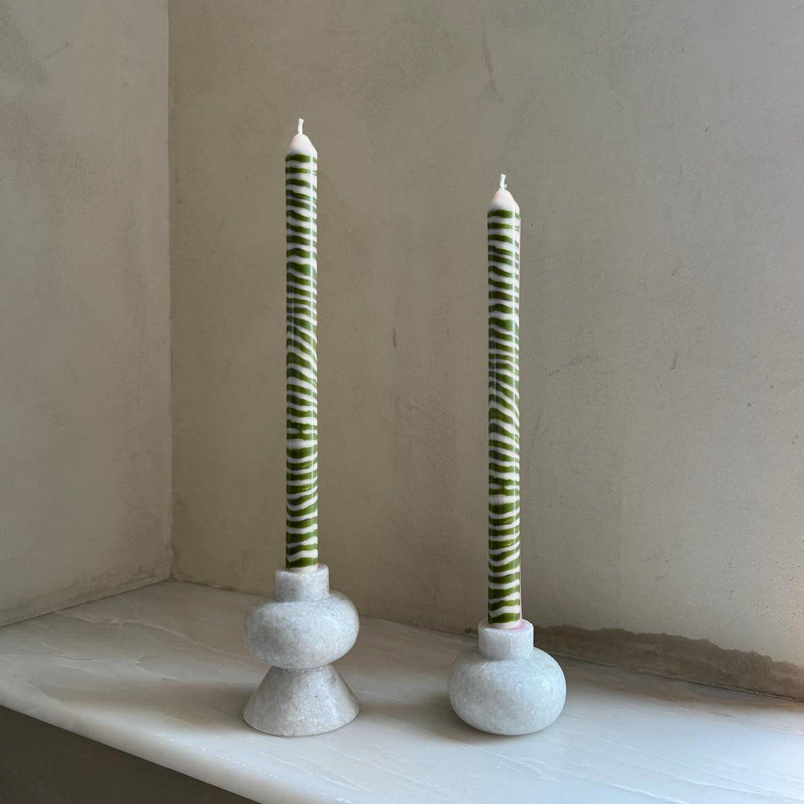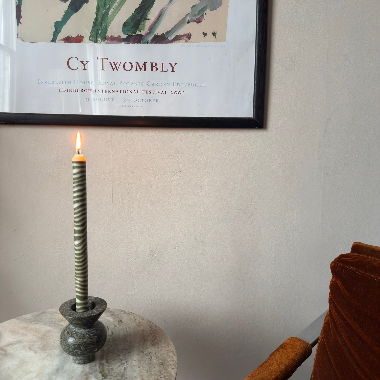 The dark olive and off-white Hedgerow candle is part of our new marbled collection. Each taper is hand-poured into contoured layers using natural wax, pure cotton wicks and natural dyes. Our luxury packaging was designed with the same ethos of quality, design and craftsmanship - using recycled Italian card to make the perfect gift.
