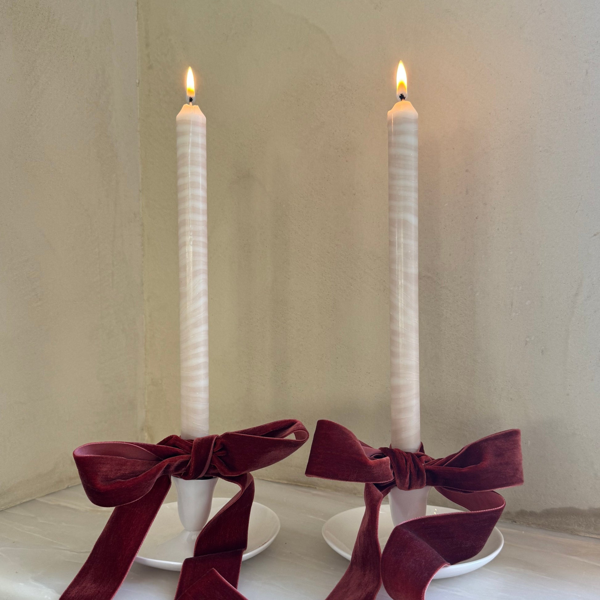 Pair of sculptural dinner candles.