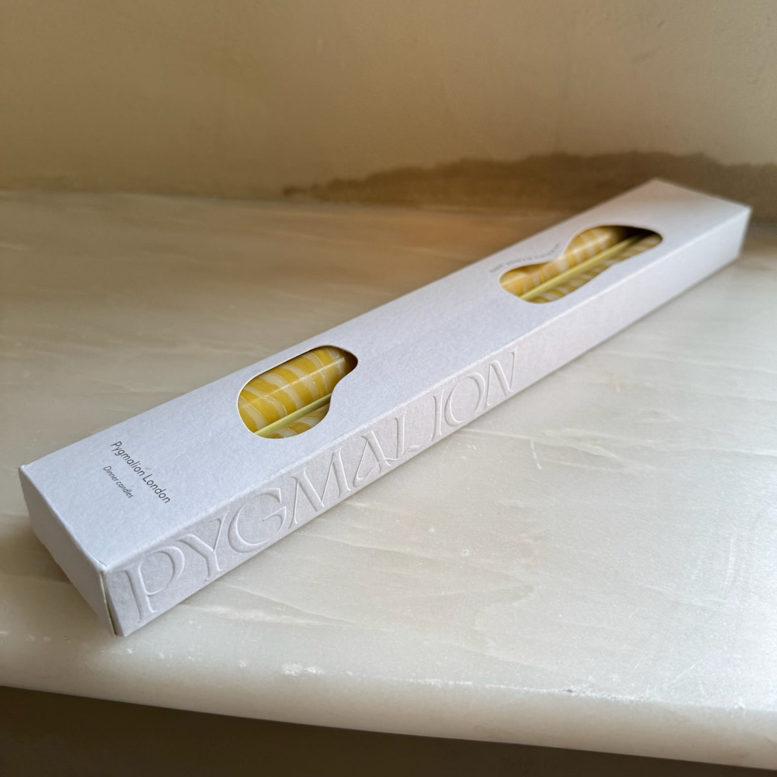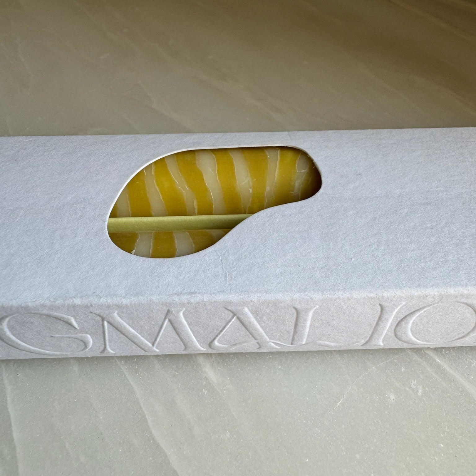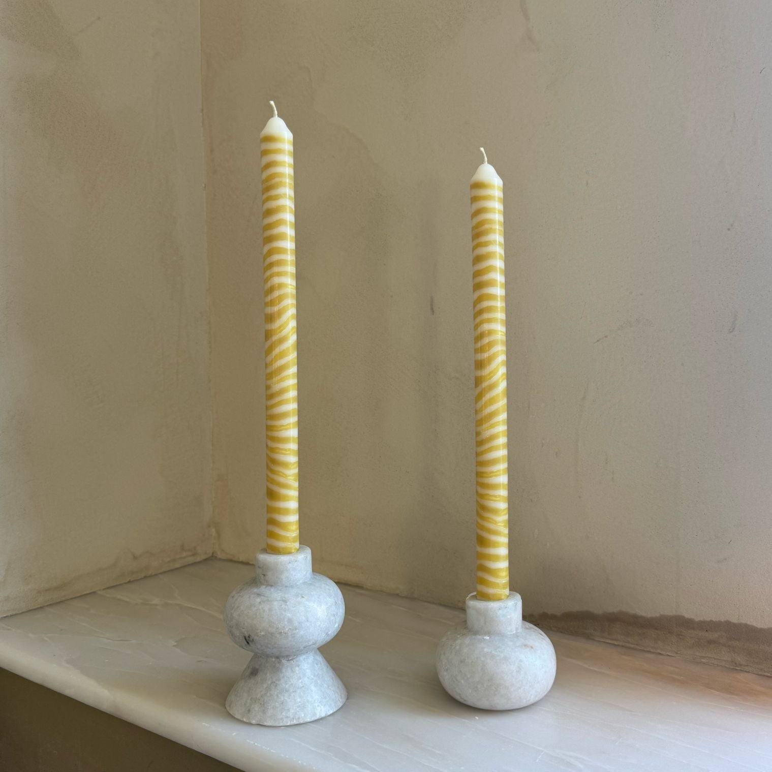 The mustard yellow and off-white X candle is part of our new marbled collection. Each taper is hand-poured into contoured layers using natural wax, pure cotton wicks and natural dyes. Our luxury packaging was designed with the same ethos of quality, design and craftsmanship - using recycled Italian card to make the perfect gift.
